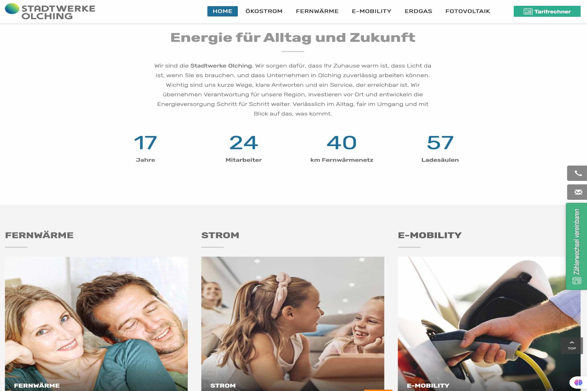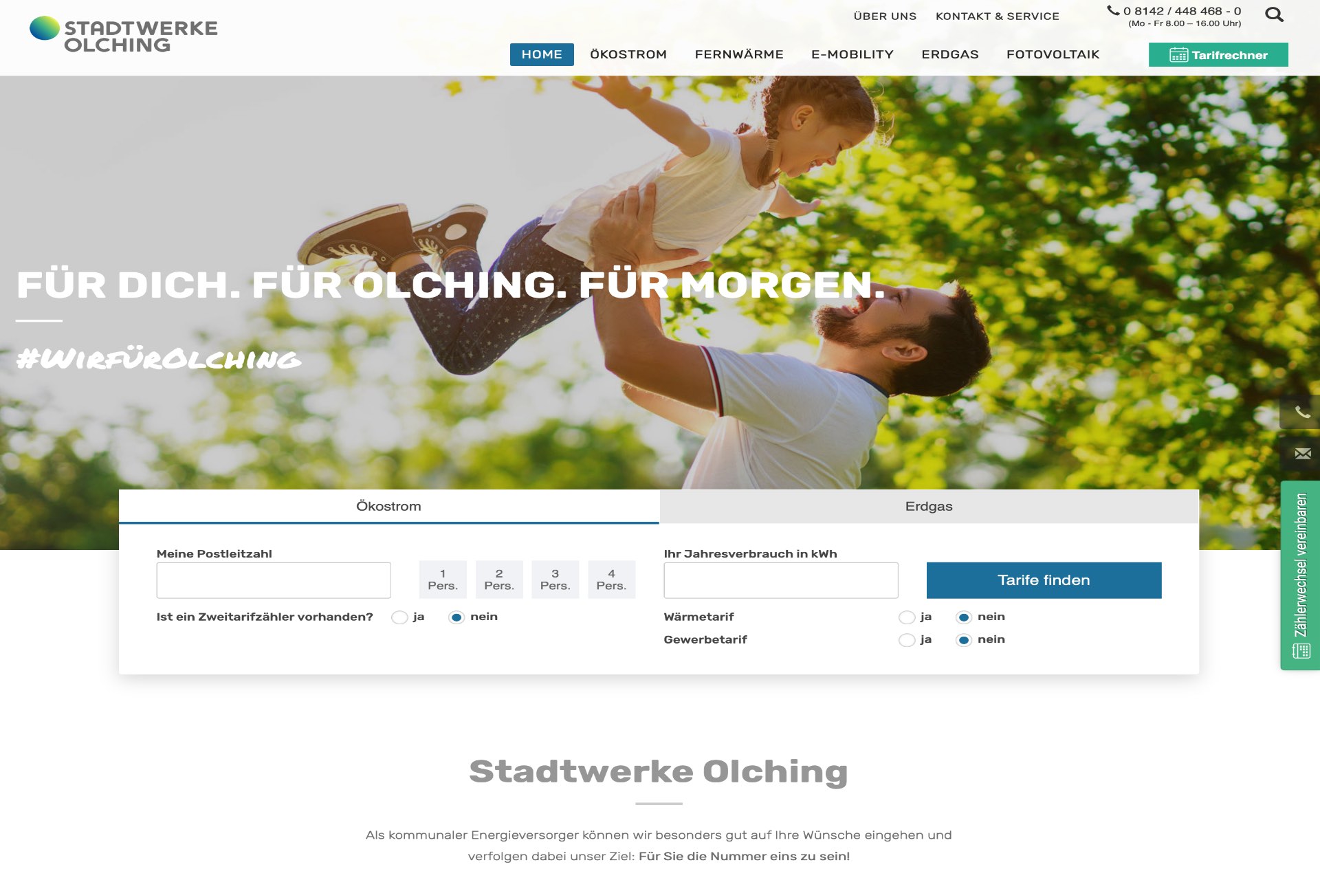 Moderne, uferfreundliche Website inkl. Tarifrechner für die Stadtwerke Olching.